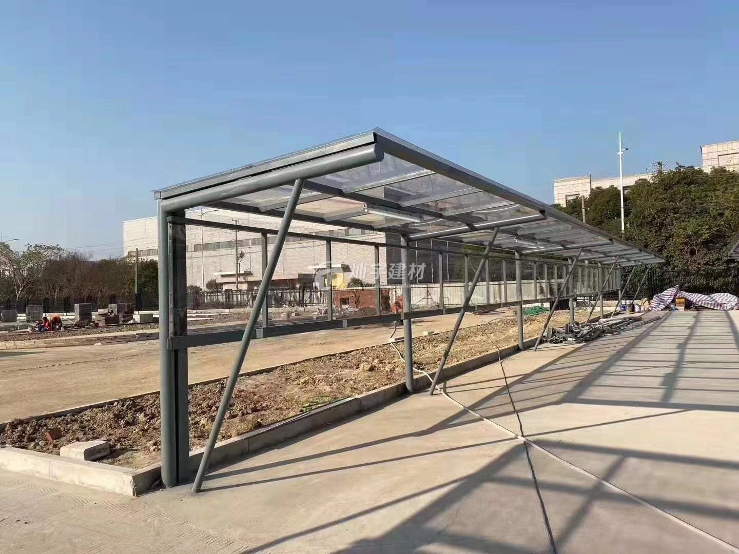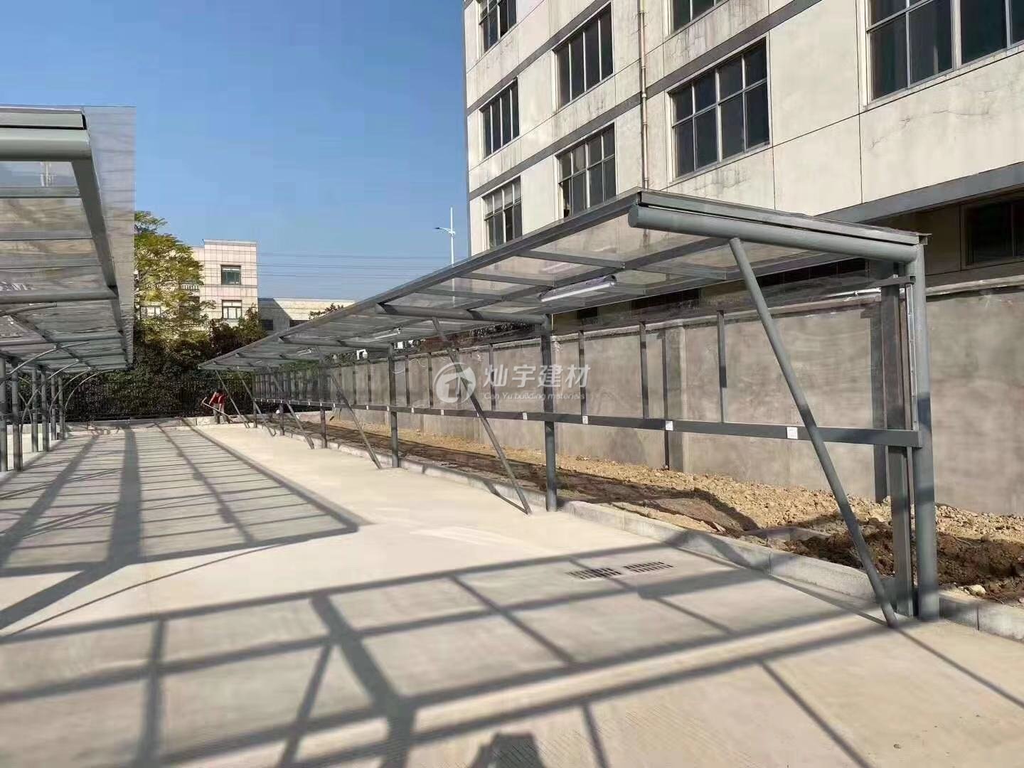 鋼結構配耐力板自行車充電車棚安裝完成
