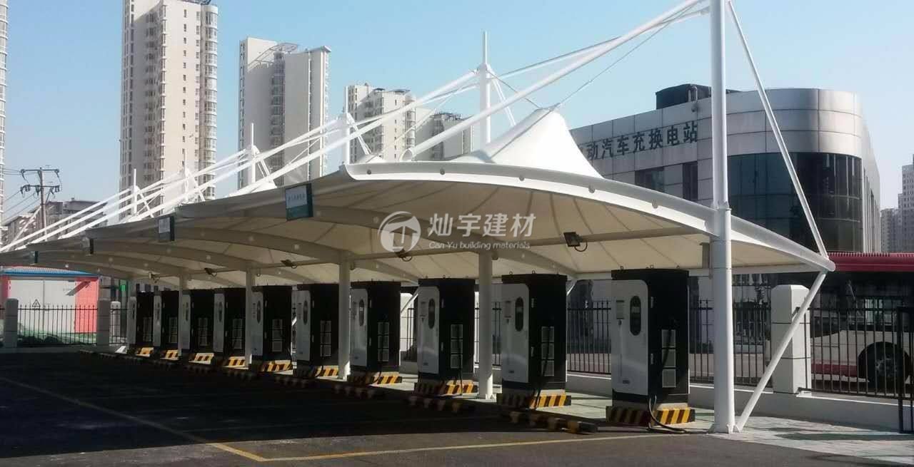 停車場,服務站膜結構車棚下,如果能安置一些充電樁設備,這將是對電動汽車一組的車主們一個大福音。停車場的設計很重要,一般公共停車場的材質已膜材為主,隔熱防雨,抗風防紫外線,而且物美價廉,安裝形式化豐富。近年來,充電樁的發展更是進一步帶動停車場的設計,膜結構和充電樁的結合,讓車棚和充電方便更多的車主,支持220v充電設備,投幣微信快捷支付,隨時充電。
