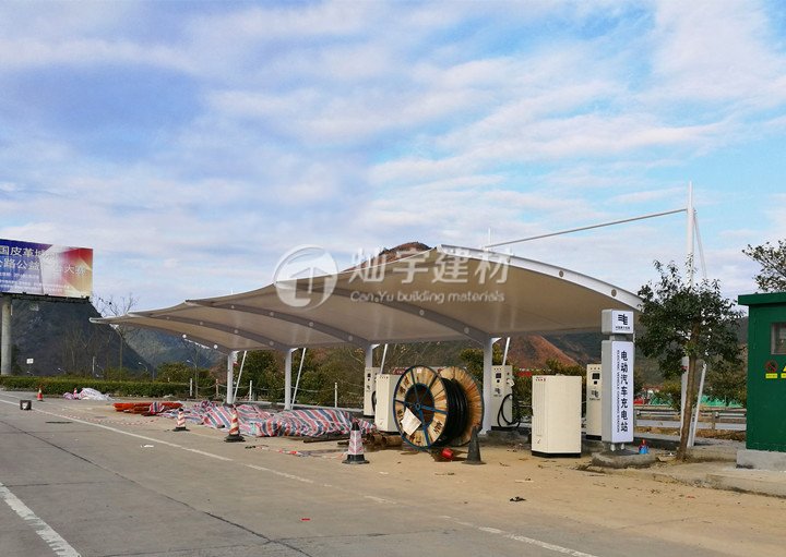 問題一、因為膜結構修建空間跨度大,較難差異防火分區,火災情況下易構成火災延伸膜規劃車棚。