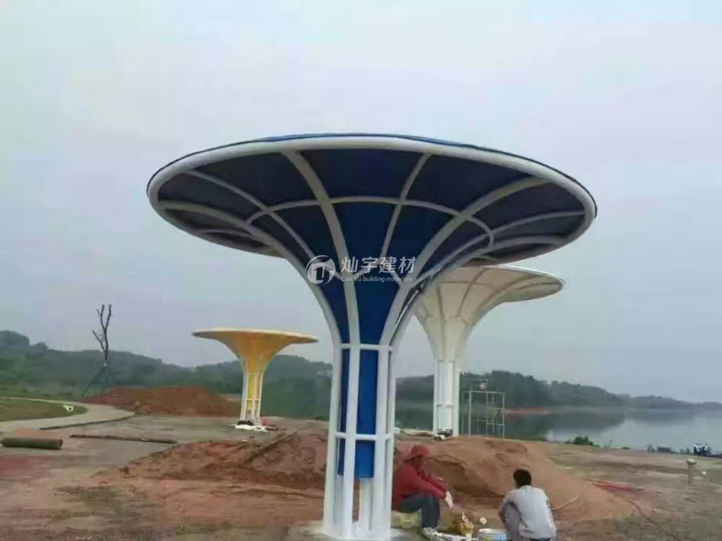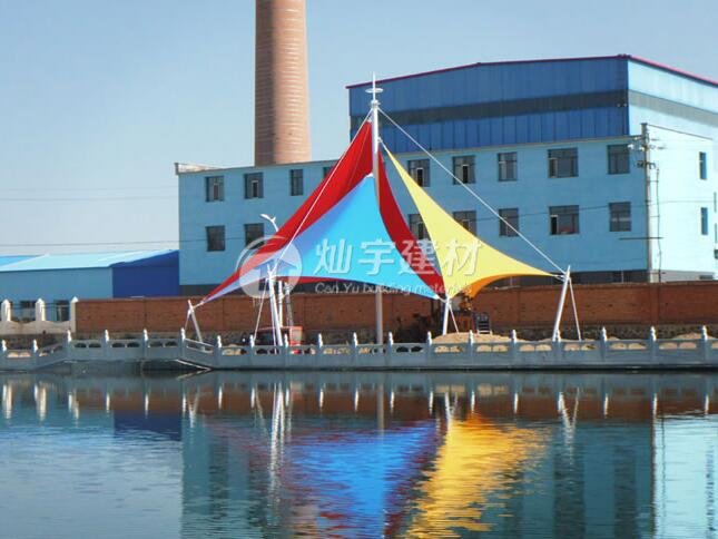 燦宇彩色膜結(jié)構(gòu)景觀棚,還有其它顏色可選,紅黃藍(lán)綠青蘭紫迷彩色滿足不同客戶的個性需求 定做熱線400-799-8099蘇州燦宇車棚